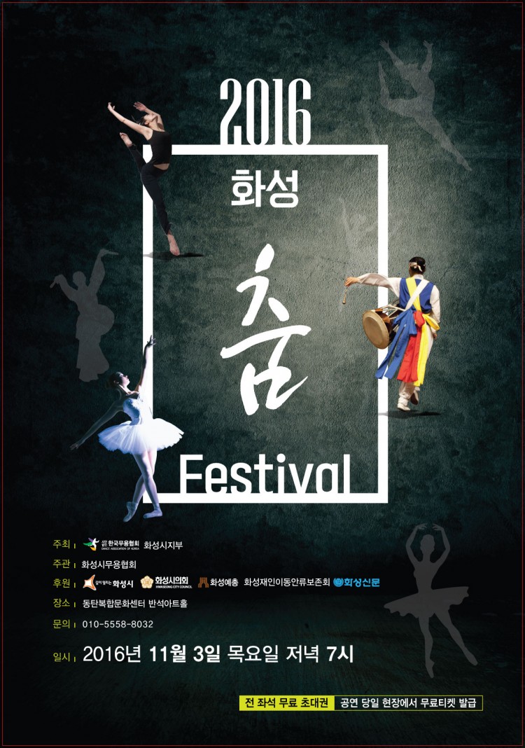 2016 화성 춤 페스티벌 페이지 정보 작성자 화성예총 댓글 0건 조회 3,138회 작성일 : 16-10-21 본문 2016 화성 춤 페스티벌 2016년 11월 3일(목) 저녁 7시 동탄복합문화센터 반석아트홀 목록 이전글양심찾기 프로젝트 전시회 16.11.08 다음글화성 교향악단(우리 다~같이) - 유앤아이센터 화성아트홀 16.10.21 댓글목록 댓글목록 등록된 댓글이 없습니다.