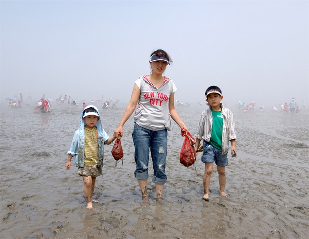 엄마와 함께 직접 캐낸 바지락을 들고 의기양양하게 갯벌은 나오는 아이들이 모습이 뿌듯해 보입니다.