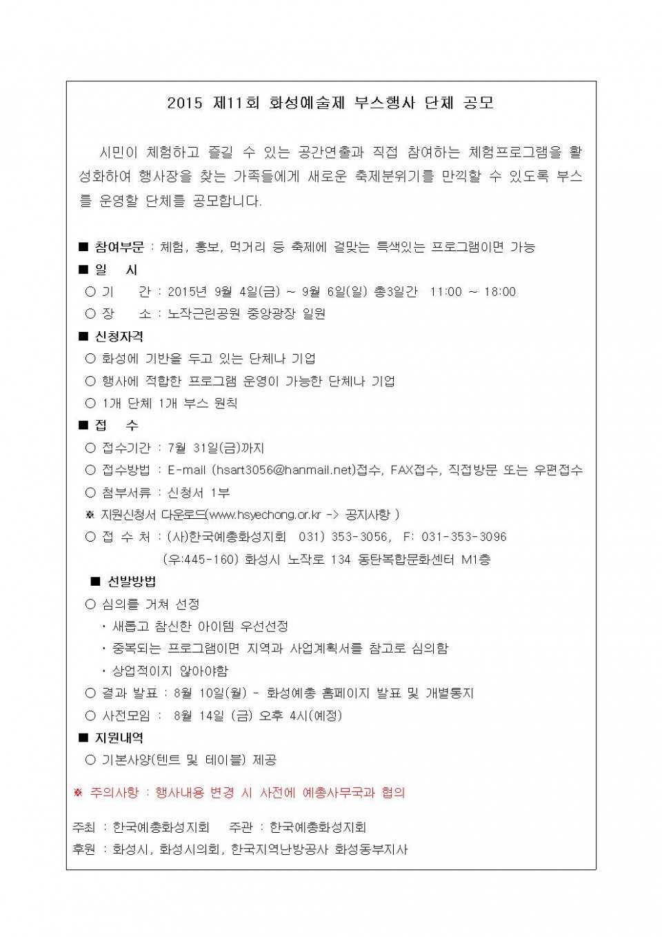 2015 제11회 화성예술제 부스행사 단체 공모