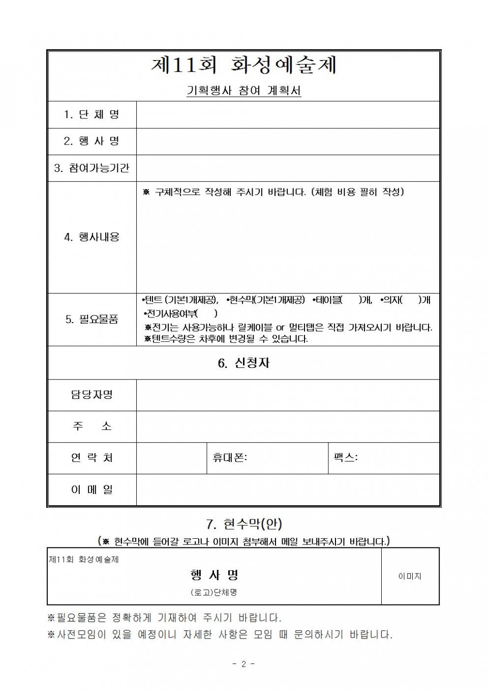 - 제11회 화성예술제 부스행사 신청서.hwp (16.5K) 131회 다운로드 | DATE : 2015-07-09 16:30:17