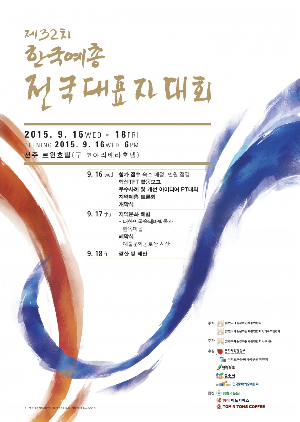 제32차 예총 전국 대표자 대회 개최 페이지 정보 작성자 화성예총 댓글 0건 조회 5,258회 작성일 : 15-09-08 본문 제32차 예총 전국 대표자 대회 개최 2015. 9. 16(수)~18일(금) / 전주 르윈호텔 목록 이전글제11회 화성예술제 거리무대공연 안내 15.09.24 다음글"32차 예총전국대표자 대회 개최" 보도자료 15.09.08 댓글목록 댓글목록 등록된 댓글이 없습니다.