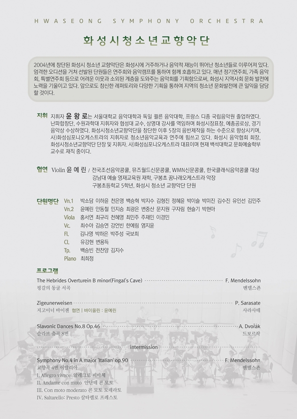 화성시 청소년교향악단 12번째 정기연주회 (프로그램안내)