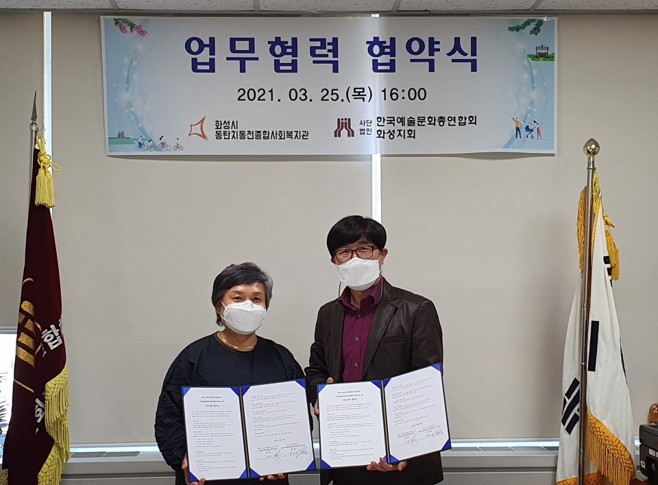 화성예총 사무국에서 화성시동탄치동천종합사회복지관(관장 이순)과 업무 협약식을 체결하였다.