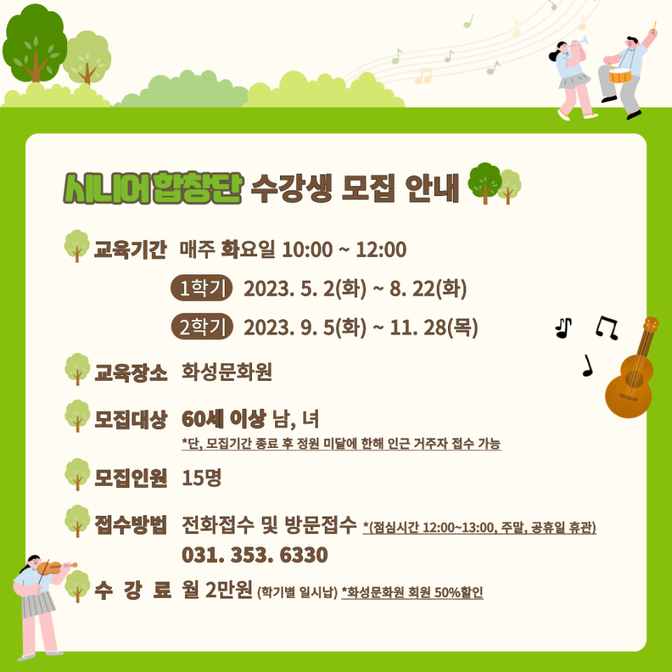 [화성문화원] 2023년도 문화학교 시니어합창단 수강생 모집